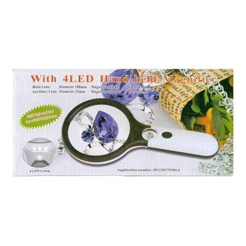 Yiwu - عدسة مكبرة موديل رقم: 70108B 4X+30X من ييوو، محمولة باليد مع 4 لمبات LED، مقاس 11 سم × 6.3 سم
