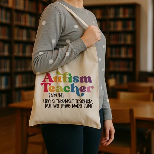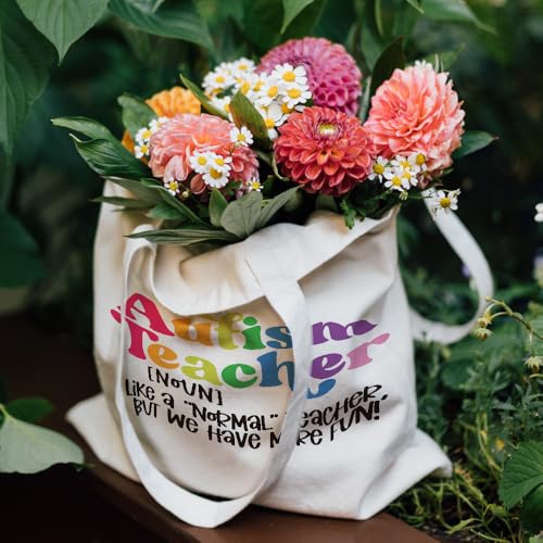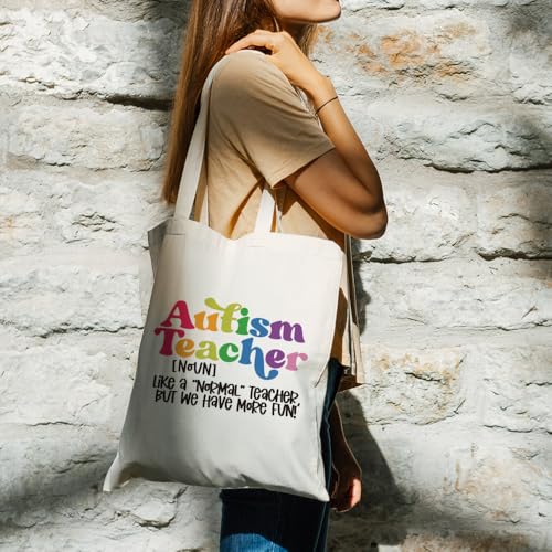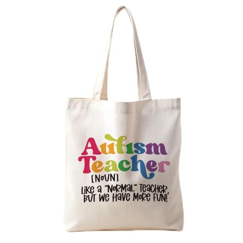 Ymzkpoa - شنطة يد كبيرة توت قماشية بطبعة عبارة «Thank You Autism Teacher» للنساء والرجال من يمزكبوا، هدايا لمعلمي التربية الخاصة لمعلمي التوحد، علاج ABA، معالج مهني، هدايا تقدير لليوم الرابع للمعلم