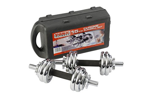 York - مجموعة دمبل من الكروم بوزن 15 كجم وحافظة من يورك فيتنس
