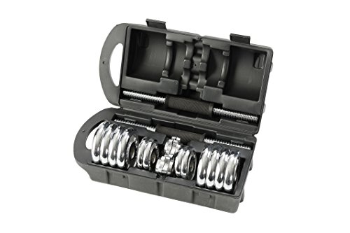 - مجموعة دمبل من الكروم بوزن 15 كجم (33 رطل)؛ اثنان من الدامبل يزن كل منهما 7.5 كجم (16.5 رطل)؛ 12 لوح وزن كروم عالي الجودة؛ مصمم لشد وتقوية العضلات واكتساب المزيد من القوة