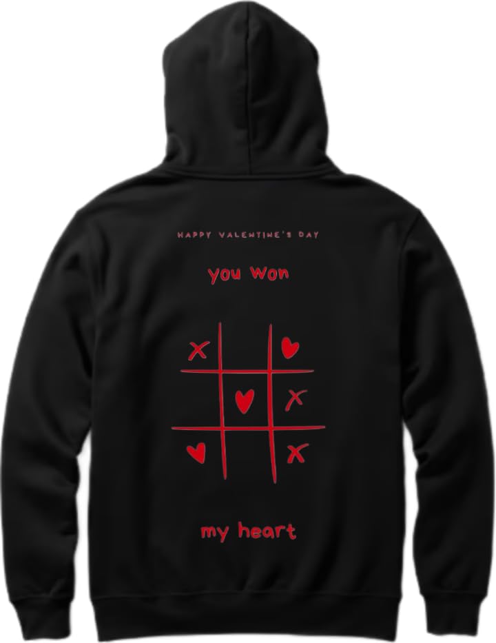 Generic - You Won My Heart VaIentine coupIe كنزة ذات قبعة أسود