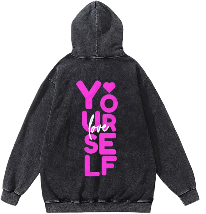 Generic - سويت شيرت بغطاء للرأس مطبوع عليه عبارة «Your love SELF