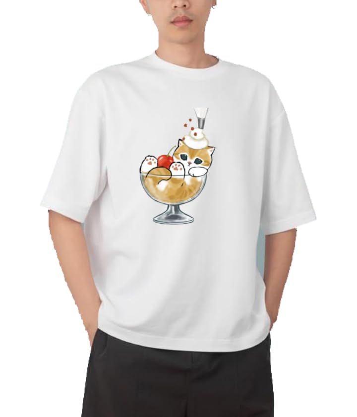 Generic - تيشرت شبابي كبير الحجم بلون أسود وأبيض وتصميم قطة كيتي لطيف، مقاس 73