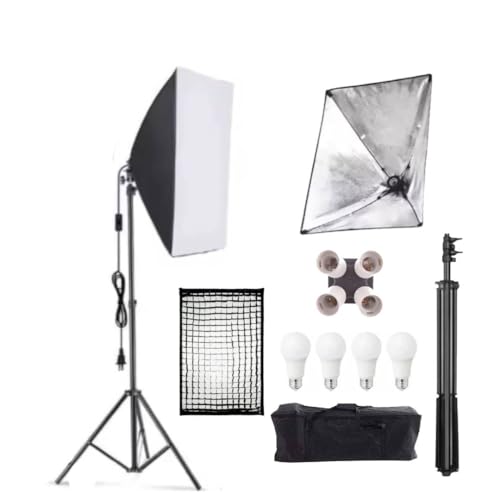 Generic - مجموعة اضاءة سوفت بوكس للتصوير الفوتوغرافى - لفيديوهات اليوتيوب و التيك توك واستديوهات التصوير - تضم 1 سوفت بوكس مقاس 50*70 سم , مع دواية رباعيه ب4 لمبات لزيادة شدة الاضاءة مع جريد و حقيبة .