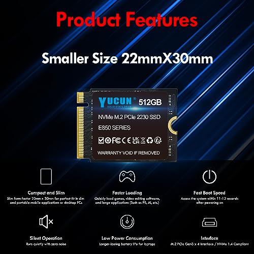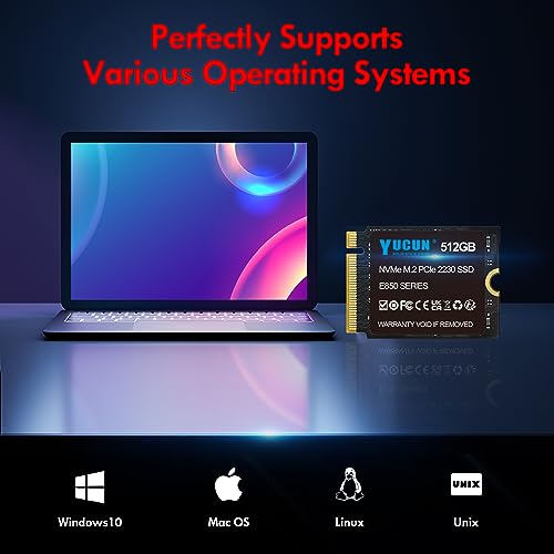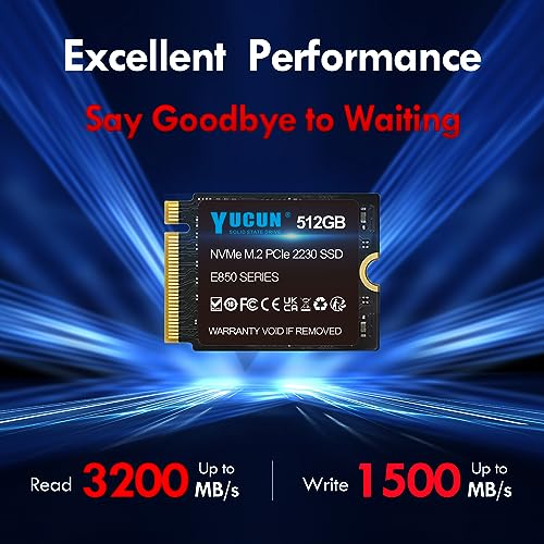 YUCUN - وسيط تخزين ذو حالة ثابتة 512GB M.2 2230 NVMe SSD بمنفذ PCIe حتى 3200 ميجابايت/ثانية للقراءة متوافق مع أجهزة تابلت ستيم ديك وسيرفس برو وديل واتش بي ولينوفو من يوكون، pci_express_x4