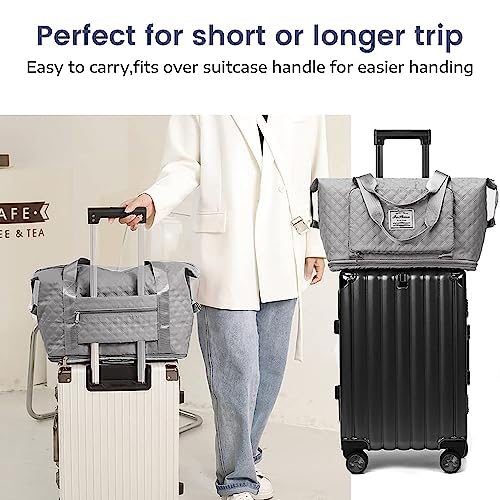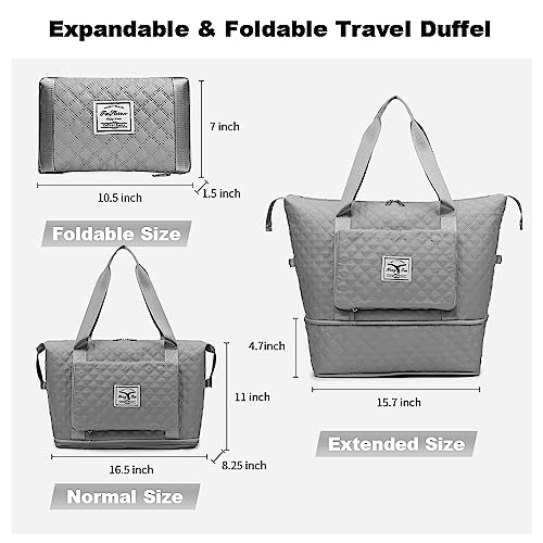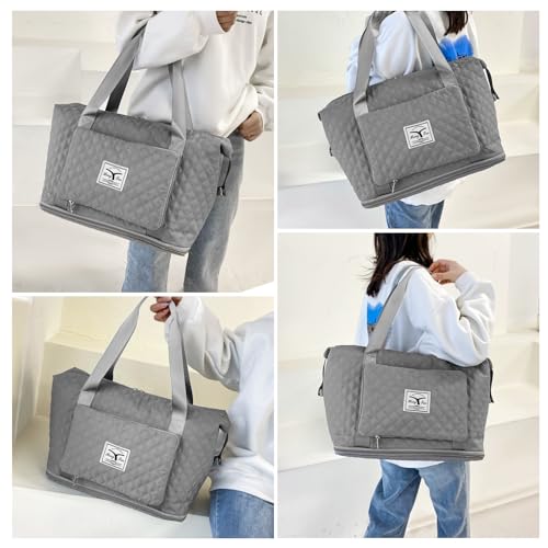 YUXES - شنطة يد توت دفل ذات سعة كبيرة قابلة للطي والتوسيع متعددة الوظائف للسفر وعطلة نهاية الاسبوع والرحلات القصيرة وصالة الالعاب الرياضية والشاطئ مناسبة للنساء والبنات والامهات, رمادي