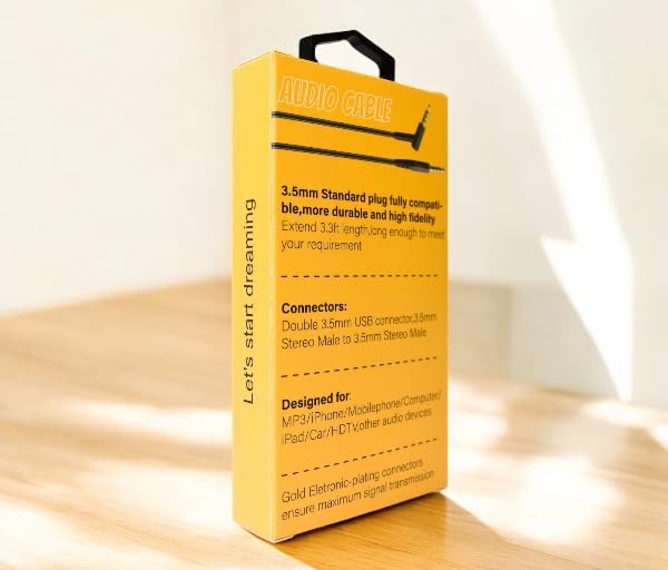 - ١) التوافق العالمي: كابل صوت ٣.٥ مم ستيريو متوافق مع الهواتف الذكية والأجهزة اللوحية وأجهزة الكمبيوتر المحمول وجميع الأجهزة الصوتية