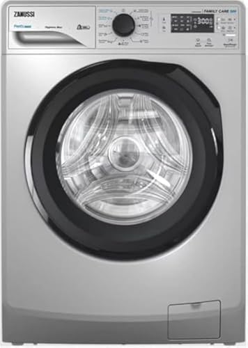 Zanussi - غسالة زانوسي بيرلاماكس بتحميل أمامي، سعة 8 كيلوجرام، لون فضي مع نظام الحماية ضد الفيضان و11 برنامج غسيل