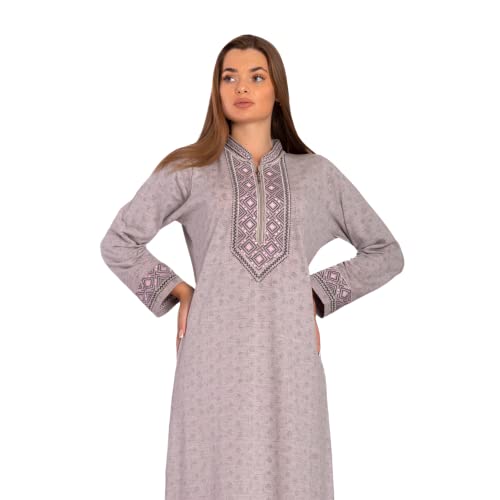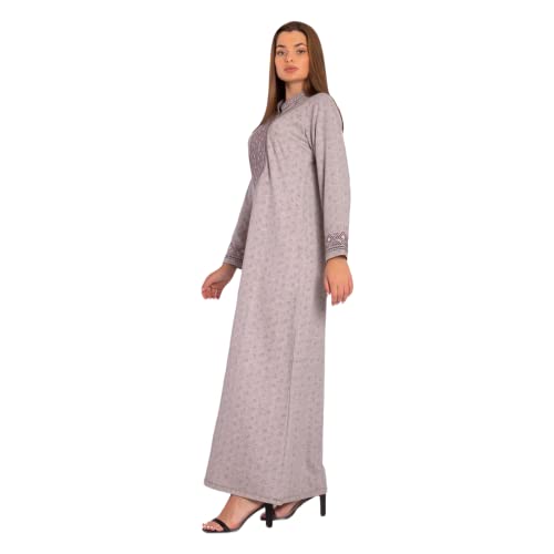 ZECOTEX - جلابية للنساء من زيكوتكس، مصنوعة من القطن المخملي، مطرزة على الصدر والأكمام، بتصميم بسيط وأنيق