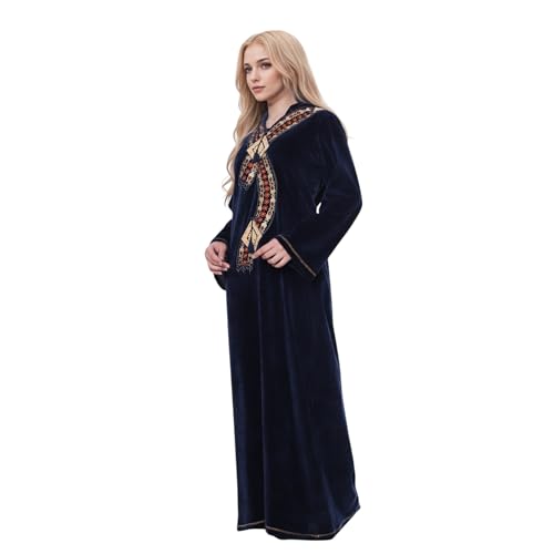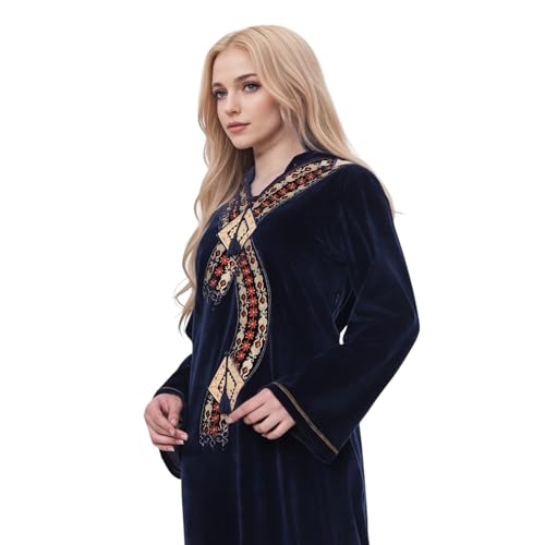 ZECOTEX - ثوب نوم دافئ للنساء من القطن القطيفة للشتاء مع تطريز وغطاء للرأس، عباية نوم مطرزة من زيكوتكس
