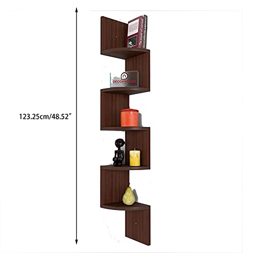 Home Gallery - ارفف زاوية بتصميم زجزاج مكونة من 5 مستويات من الخشب الطبيعي، اسود