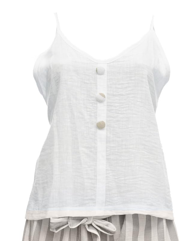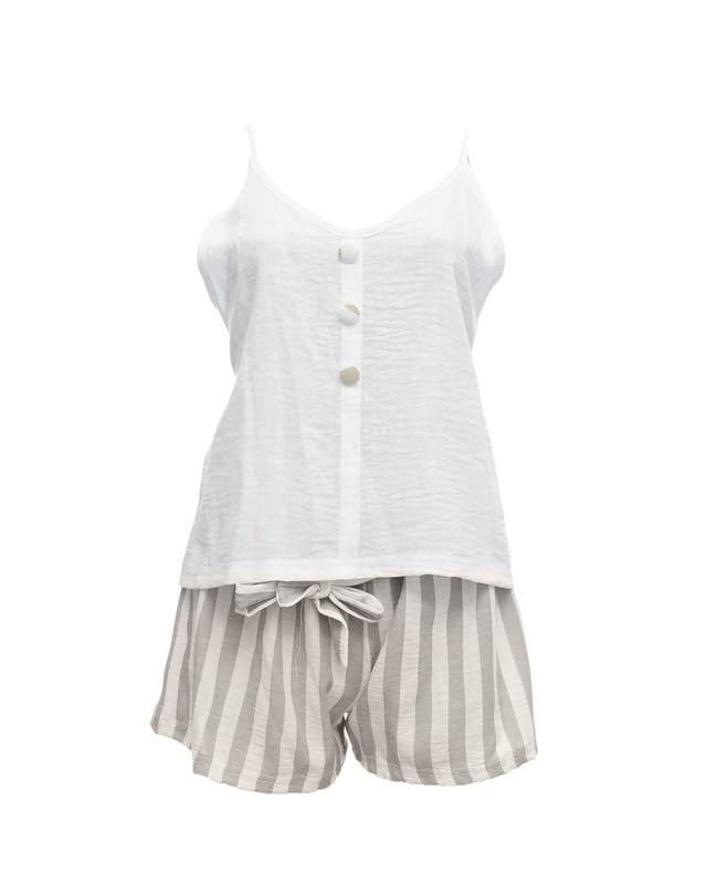 ZONA - طقم بيجامة قطن مكون من توب بحمالات وشورت للنساء من زونا - مقاس واحد - لون كافيه 9420-C-47