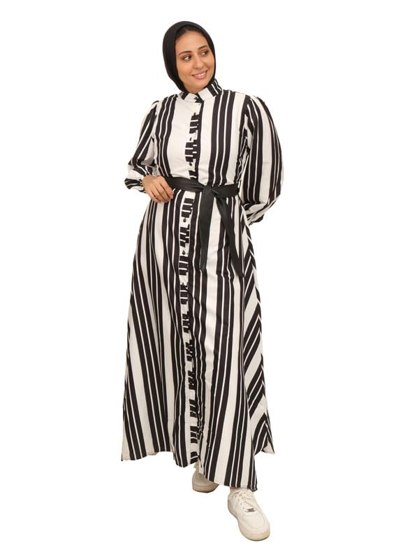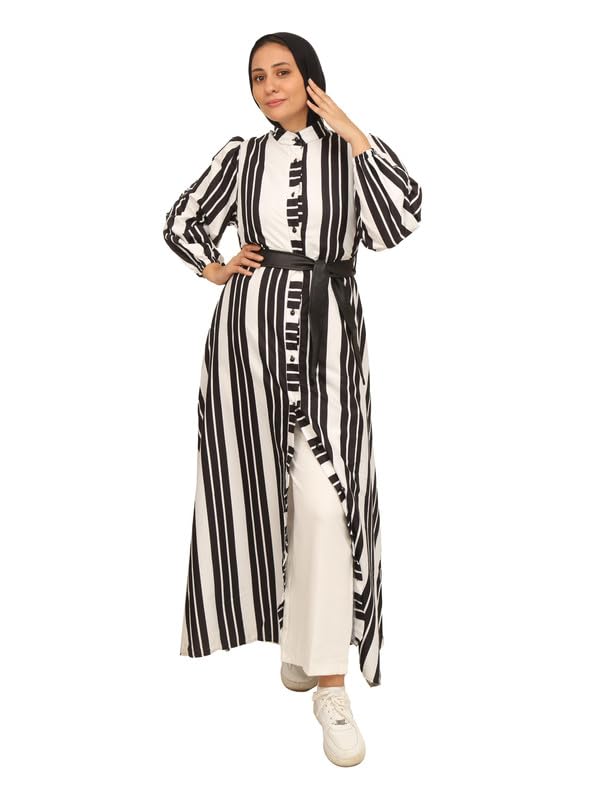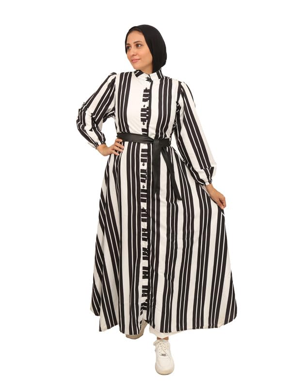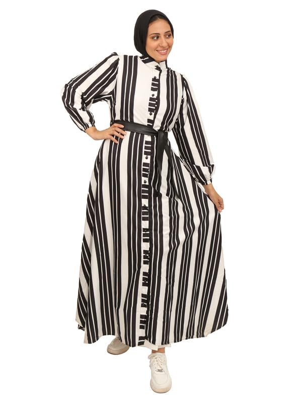 ZUYA - فستان طويل بزارير قطن نسائي من ZUYA - ابيض و اسود