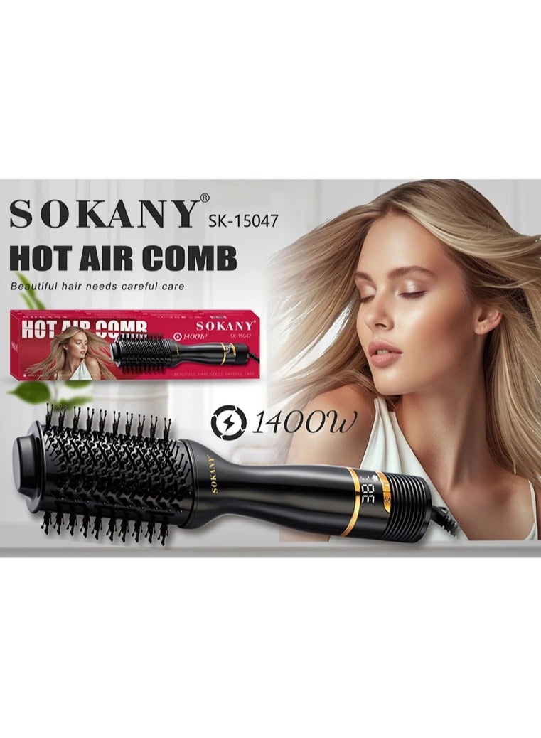 The Sokany 1400W Digital Hair Dryer Brush features three functions in one device: a hair dryer, an iron, and an airbrush. This device helps you achieve professional results in no time. SK-15047