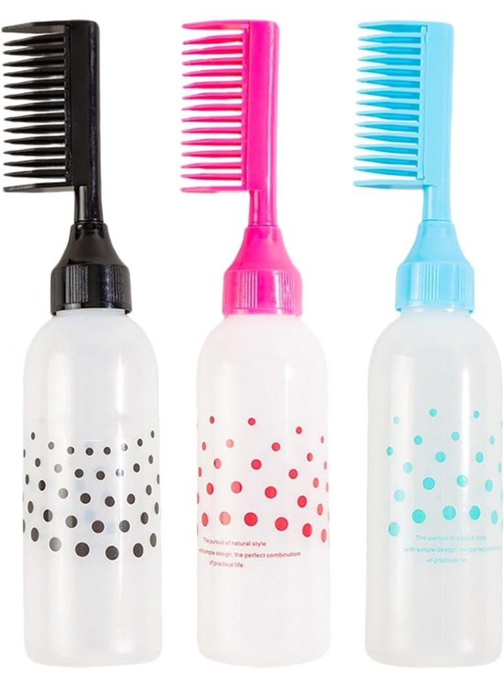 زجاجة لصبغ وتلوين الشعر بتصميم مشط لتوزيع الصبغة والشامبو , زجاجة مدرجة بمقياس لصبغة الشعر حتى الجذور, قطعة واحدة - متعدد الالوان