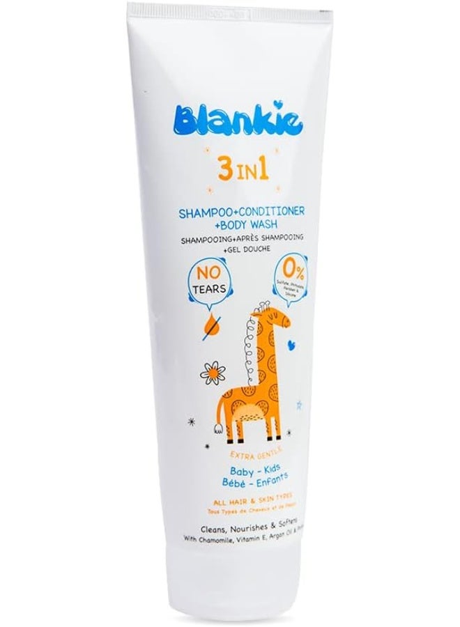 Blankie 3in1 Hypoallergenic Cleansing, Nourishing & Softening Baby Shampoo, Conditioner & Body Wash with Chamomile, Vitamin E & Argan Oil for All Hair & Skin Types - sulfate free, phthalate free, silicone free 200 ml
