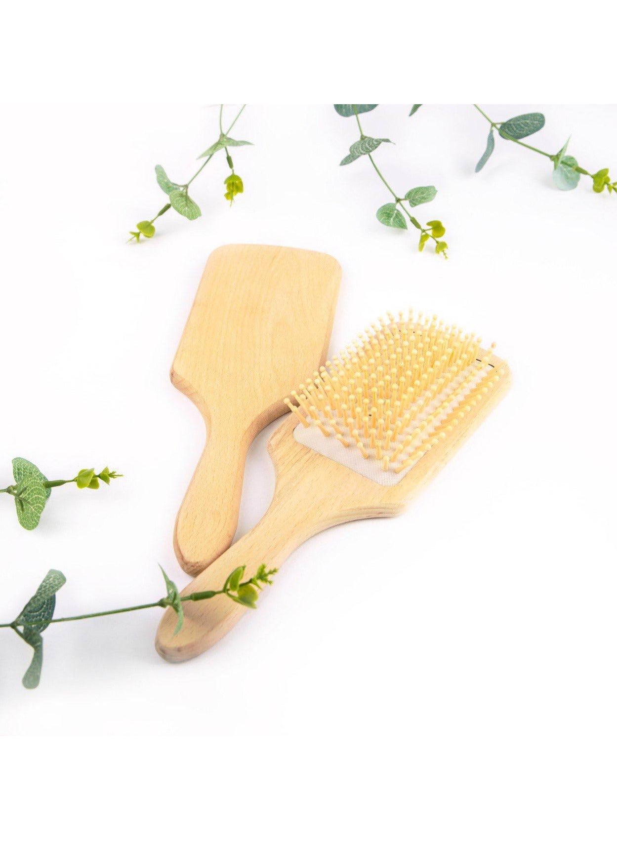 A wooden brush with soft bristles that's gentle on the scalp, ideal for painless detangling and distributing natural oils. A natural touch for healthy, soft hair every day!