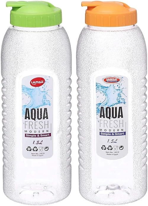 زجاجة مياه بلاستيك اكوا فريش من لمسة بلاست، 1.5 لتر، قطعتين - متعدد الالوان , 1.5 L