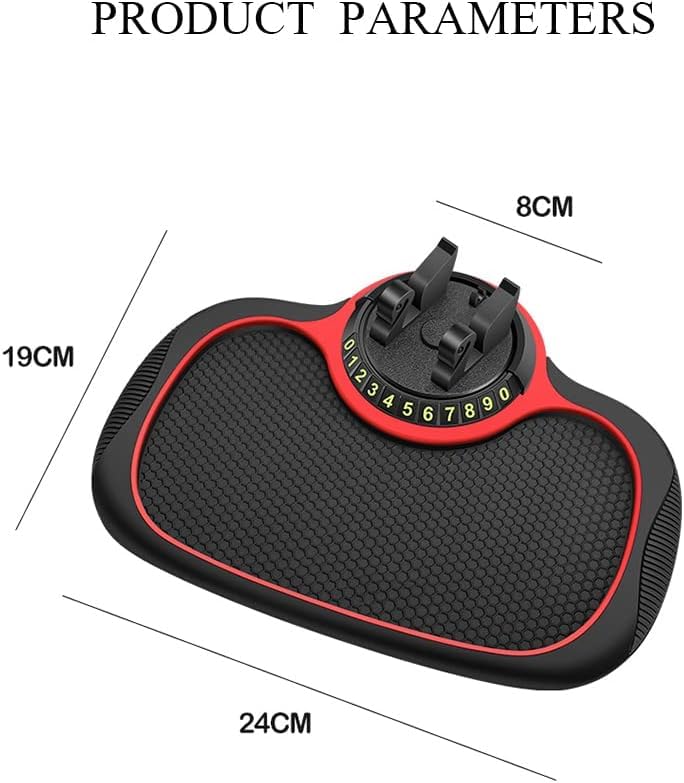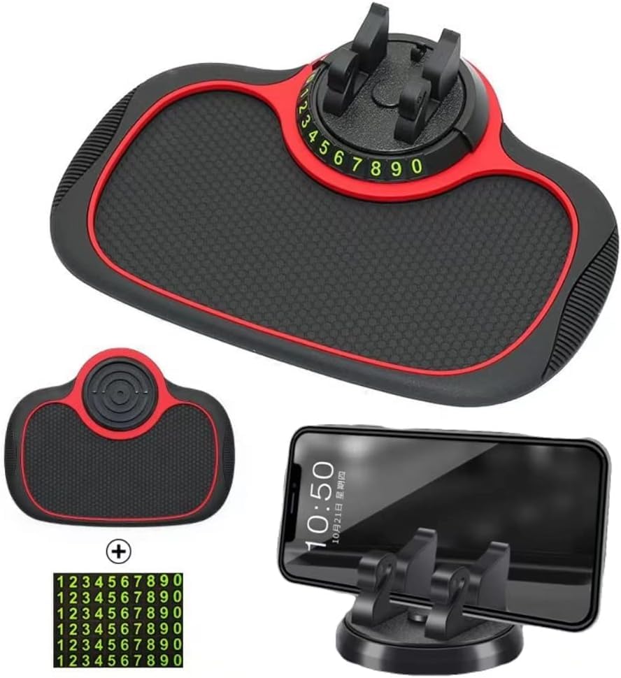 - Car Pad and Silicone Phone Holder Flexible with Phone Numbers Rotatable Detachable Semi-Oval Black in Red