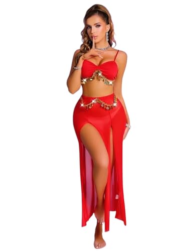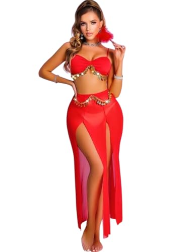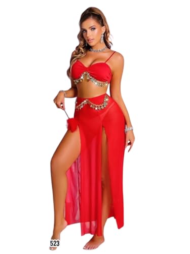 Generic - بدلة الرقص شرقي لون أحمر شفاف شيك جدا مقاس واحد