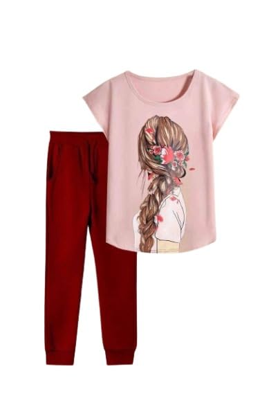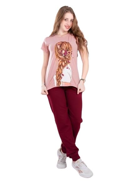 Generic - بيجامه بناتي تيشرت كشمير عليه بنت وبنطلون نبيتي