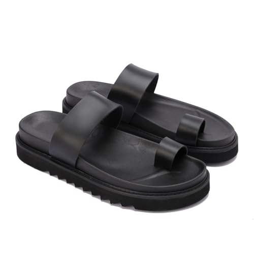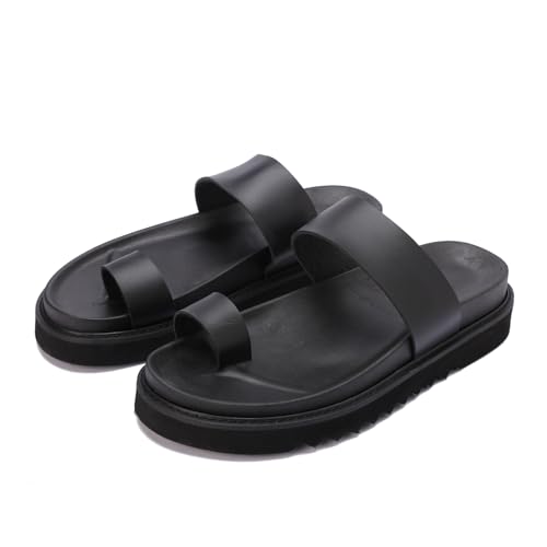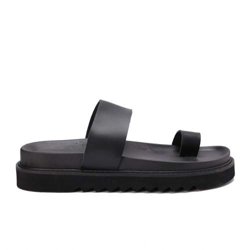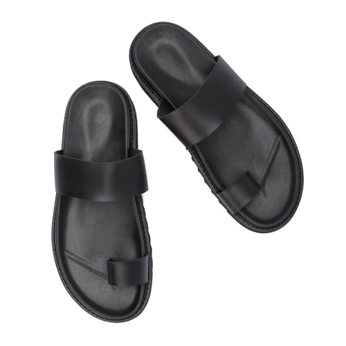 Generic - صندل رجالي مصنوع من أجود خامات الجلد أسود مقاوم للماء بتصميم إصبع عصري ومريح