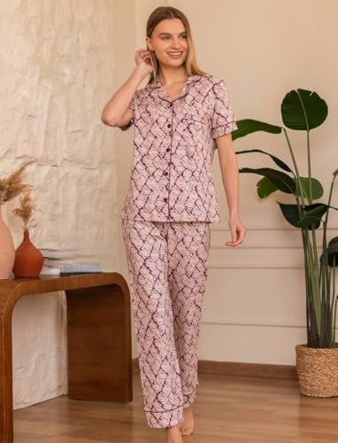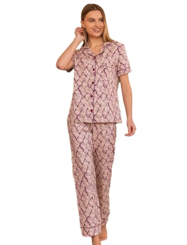Generic - طقم بيجامة قطن حريمي صيفي زر مكون من قطعتين بنطلون و تيشرت طقم بيجامة أنيق مصنوع من أجود واأعلى مواد قطن ممتازه