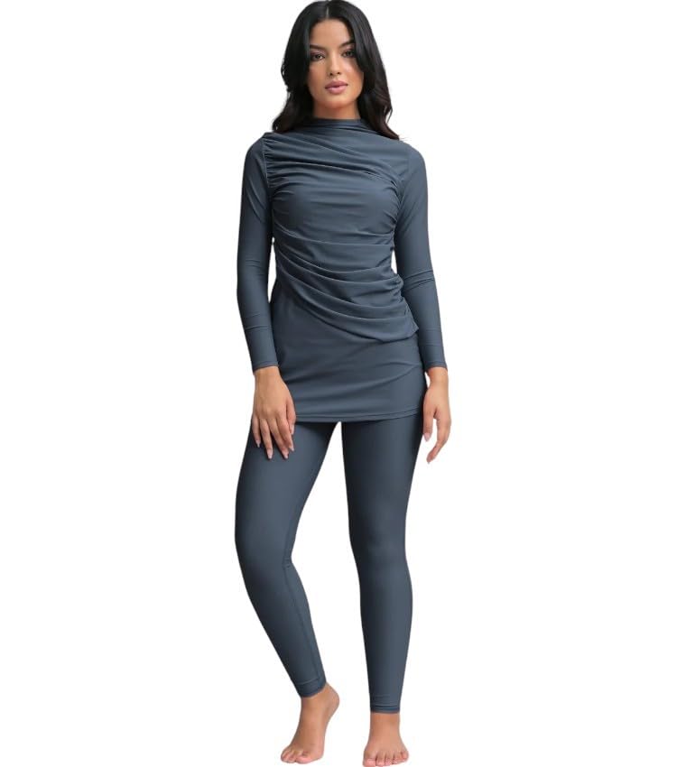 Generic - طقم ملابس سباحة (بوركيني) من Vicino مكون من قطعتين مصنوع من الليكراه - بقصه مختلفه و شكل مميز و مريح متوفر بمقاسات مختلفه لون رمادى