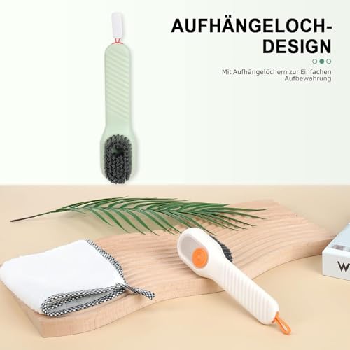 - تصميم فتحة تعليق (Aufhängeloch-Design): هذه الميزة تسهّل التخزين بعد الاستخدام، مما يوفر مساحة ويحافظ على الفرشاة جافة ونظيفة. فرشاة ناعمة وكثيفة: مصنوعة من شعيرات ناعمة لا تسبب خدوشًا على الأحذية أو الأقمشة، وتصل إلى الأماكن الصعبة لتنظيف عميق وفعال. متعددة الاستخدامات: مثالية لتنظيف الأحذية، الملابس، السجاد، الأرائك، والمفروشات الأخرى. تصميم مريح: مقبض مصمم ليناسب اليد بشكل مريح، مما يسهل عملية التنظيف ويقلل من الإجهاد. مقاومة للماء: يمكن استخدامها بسهولة مع الماء والصابون. التفاصيل الفنية: المواد: بلاستيك عالي الجودة وشعيرات نايلون ناعمة.
