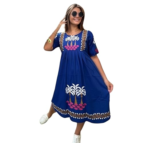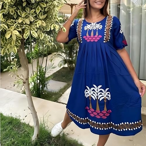 Generic - فستان حريمى كاجوال صيفي قصير - للحجاب - قطن - نصف كم - مثالي الشاطئ المصف و الخروج اليومي