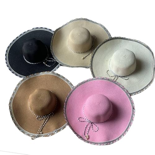 Generic - قبعة شاطه كبيره في جاية الانقاه للبنات والنساء للحماية من الشمس ، قابله للطي ومزين بفيونكه ، مصنوعه من مواد استورهه من الطبيعة الوان زاهية خامه رائعه