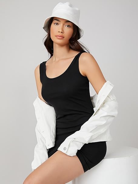 هنادي - كاش مايوه قصير نسائي قطني حمالة عريضة لون اسود مريح خفيف صيفي للبحر والمصيف والرحلات