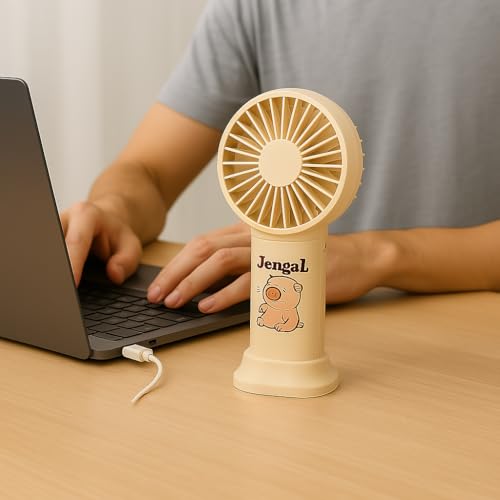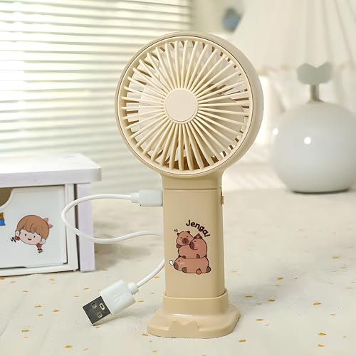 Generic - مروحة يد صغيرة قابلة للشحن بقدرة 1.5 وات وسرعة واحدة - تصميم صغير خفيف الوزن - موديل YM88209A (بيج)