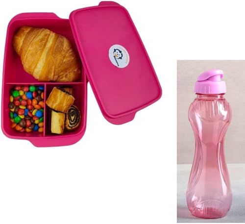 Generic - لانش بوكس سعة 1 لتر من بنناا فوشيا & زجاجه تركى ماركه Qlux بلاستيك صحى سعه 750ملى فوشيا عرض قطعتين (قطعتين)