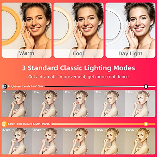 - 【360°ADVANCED LED BEADS】- The selfie right light with 10'' adopts 132pcs advanced LED lamp beads, which have a high color rendering with 360° aperture could give you a better fill light effect to brighten the complexion. 2900K - 6000K (warm to cold) color temperature, no fuzz, no glare, and safe for your skin. It gives an even light to improve the quality of some of the vlogging video, pictures and to enhance gaming lighting RGB, and doesn’t get warm.