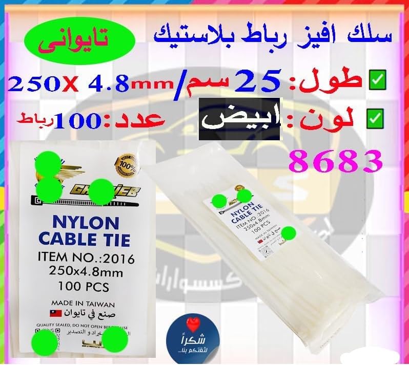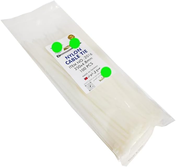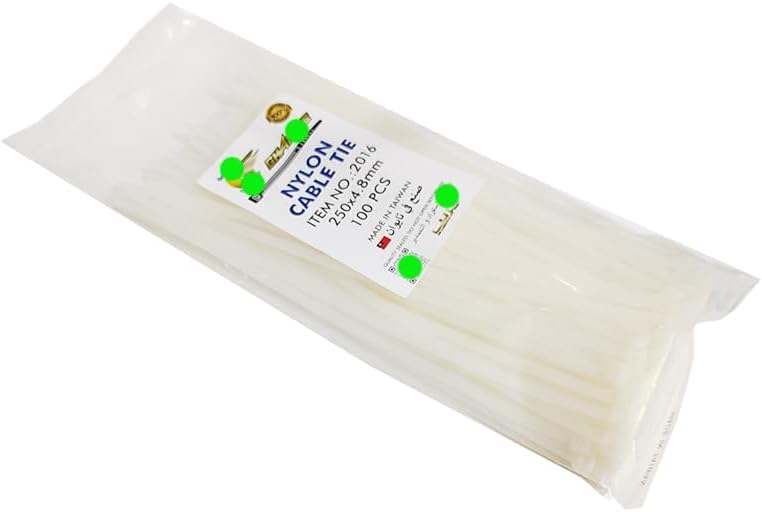 Generic - رباط حزام كابلات ، فافيز بلاستيك حزام ربط ذات مقاومة عاليه للاستخدام في الأماكن المغلقة و الخواف((100 قطع ، أبيض ، 25 سم ، 4.8 مم ، كود 1034 :8683)-من نسمه ستور