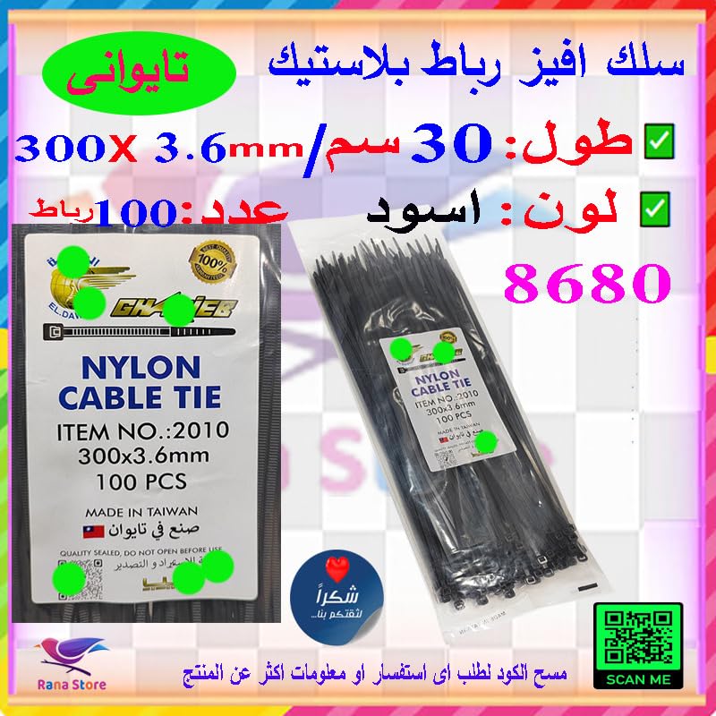 Generic - رباط حزام الكابلات ، فيز بلاستيك حزام ربط ذات مقاومة عاليه للاستخدام في الأماكن المغلقة و الهواء (100 قطع ، أسود ، 30 سم ، 3.6 مم ، كود 9522-8680) - من رانا ستور