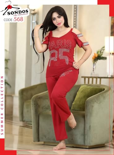 SONDOS FOR HOMEWEAR - 100% Pure Cotton Women Summer Pajamas – Shiny Design – Free Size Fits 60 to 90 KG – Sondos Homewear – Casual Comfortable Home**