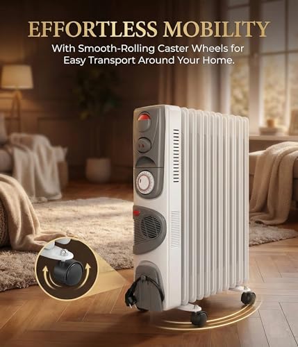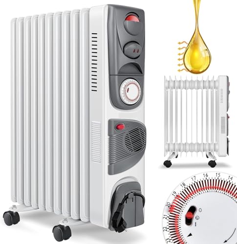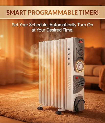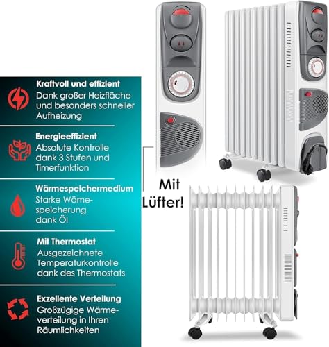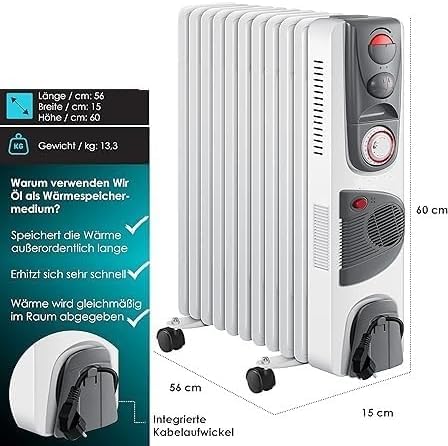 Generic - دفاية زيت من 11 فنف - 2500 وات - مستويات الحراره - مؤقت تايمر - ترموست- مروحة توزيع الهواء