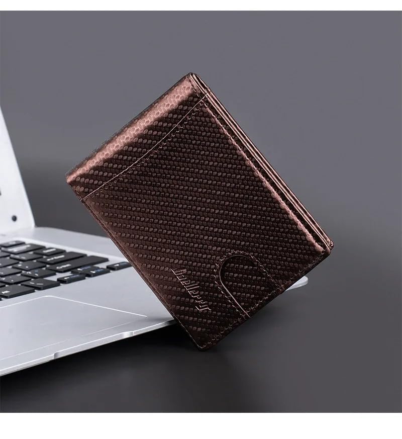 Generic - محفظة جلدية للرجال بتصميم عصري باللون كاربون كوبر مع 11 فتحة للبطاقات و خاصية حماية RFID