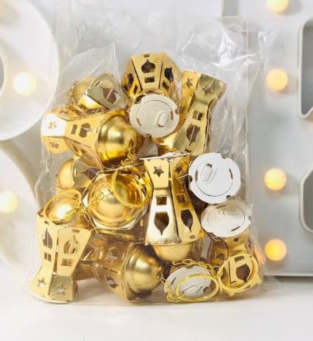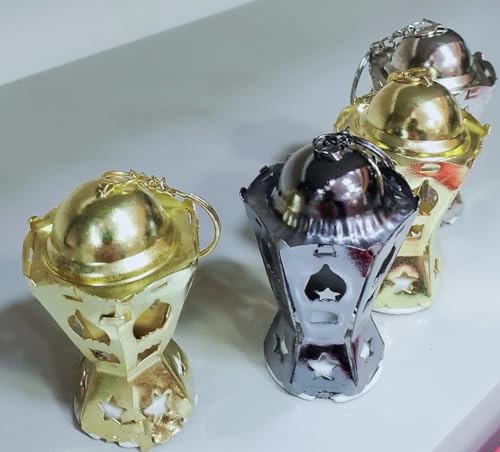 Generic - عرض 12 قكعه من طقم سلسلة مفاتيح فانوس رمضان معدن ، مقاس 12 سم اللوان متعدده خمات عاليه الجوده ، تصميم نجمه وهلال ، مضيءه مزخرفه للعطلة ، حلقة مفاتيح معدنية INCLUDED COLOR