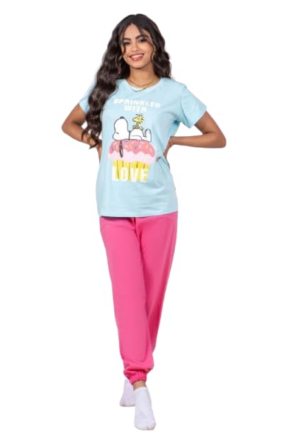 Generic - بيجامة بناتي قطن سنجل جيرسي تبيس مرأة - لون لبني - مقاس 12 - رقم 523