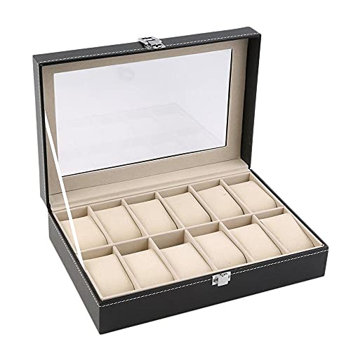 Spaceshoop - صندوق عرض 12 شبكة من الجلد الصناعي، منظم لتخزين المجوهرات، صندوق عرض ساعة مغلق