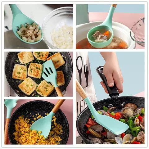 Generic - طقم توزيع سيليكون 12 قطعة بيد خشب واستاند أصلي ثقيل L