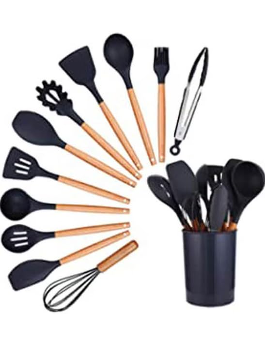 generic - 12 Pcs Silicone Cooking Utensil Set Black