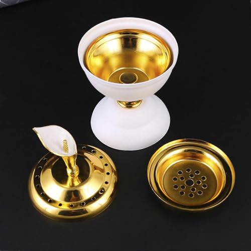 - مميزات رائعة: وعاء داخلي مطلي بالذهب يضفي لمسة جمالية فاخرة، في حين تضمن اللوحة المثقبة احتراقًا مثاليًا للبخور وتمنع تراكم الرماد داخل المبخرة.