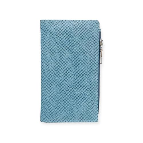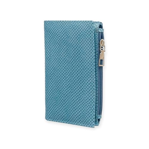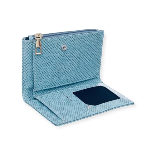 M A - محفظة جلد لامع مطبوع مقاس 16 × 9 سم للنساء من MA - ازرق فاتح