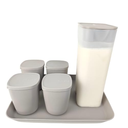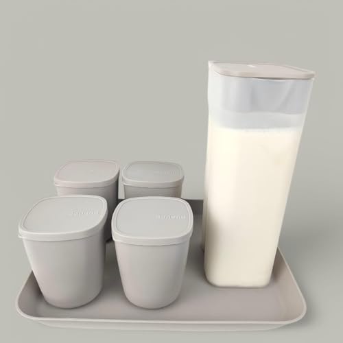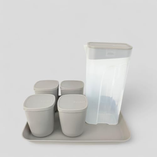 Generic - طقم تقديم عصائر ، دورق 1600مل مع صينيه 15.5 بوصه و 4 أكواب 320 مل بغطاء للاكواب- اللون رمادي .