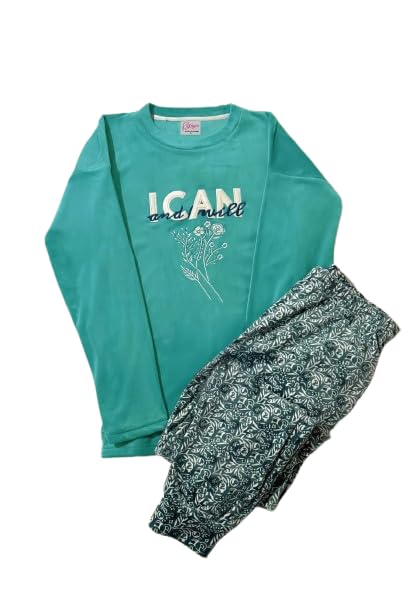 Generic - بيجامة شتوية كاجوال للنساء من قطعتين قطيفة مقاس موحد كود 16042 لون تركواز