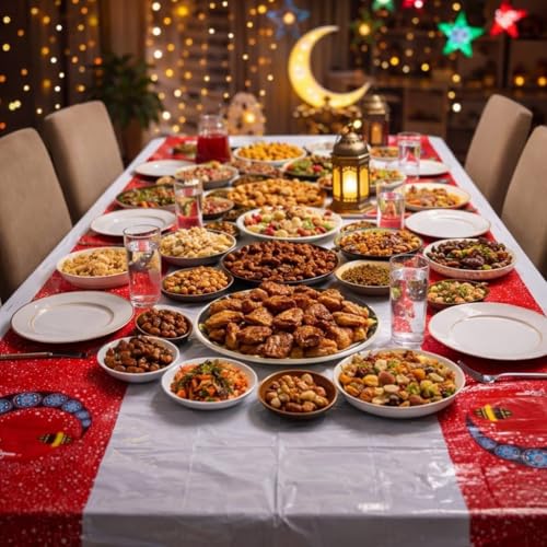 Generic - مفرش سفره أشكال رمضان خامه بلاستيك أشكال تحفة تنفع لكل الاذواق مقاس 175 * 110سم 4 قطع*